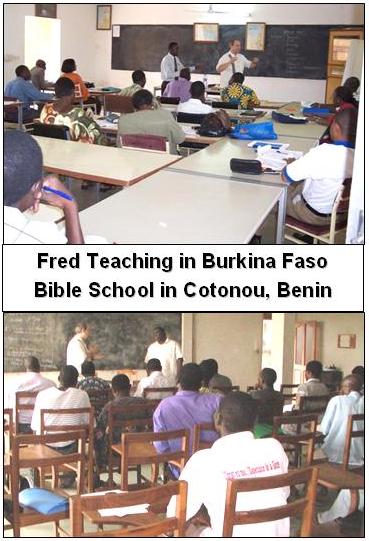 Fred was then back to the Bible School in Cotonou to teach New Testament.  Then he did some “live” teaching at a Video Bible School.  Thank you for your prayers.