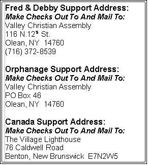 We have just celebrated Thanksgiving again. Debby and I truly want to Thank You with all of our hearts for making 2008 a success. We are your hands extended out to the, “uttermost parts of the earth.”